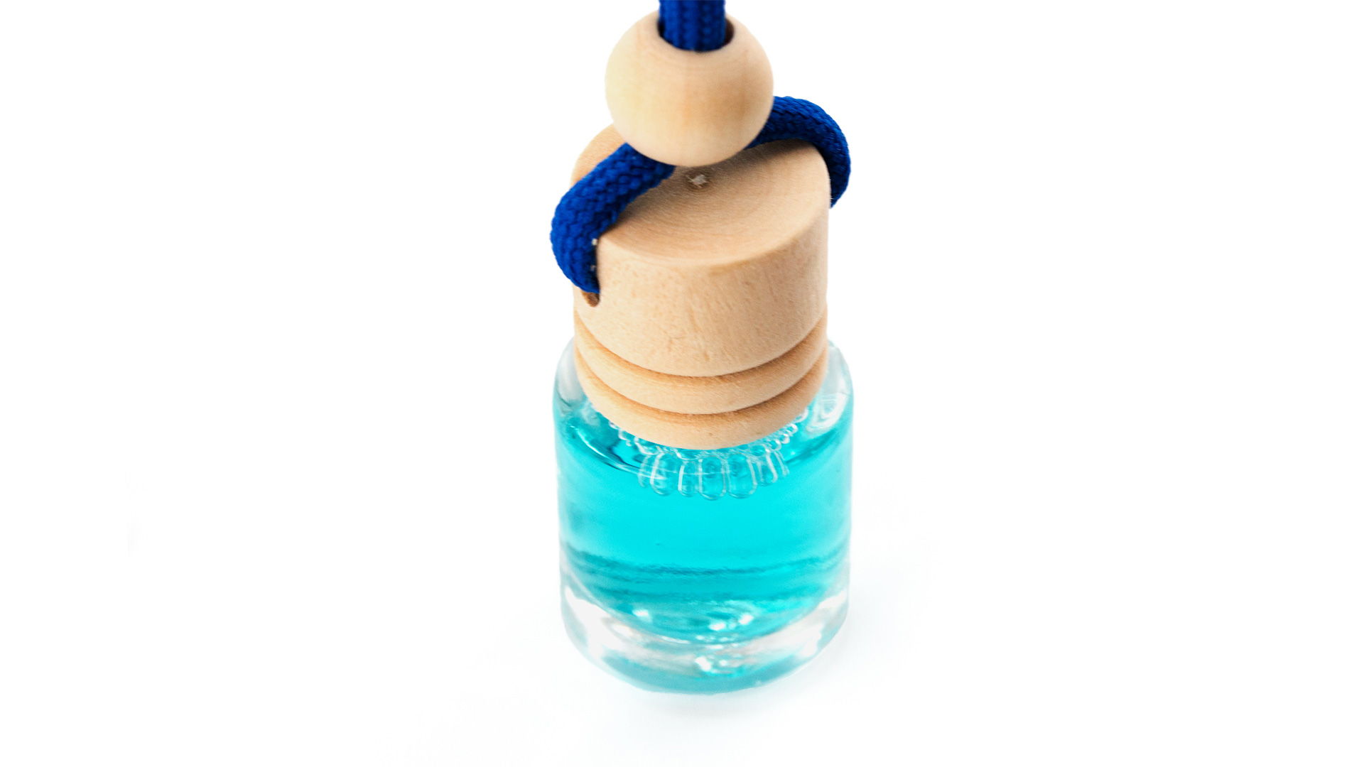 Em uma jarra de vidro de 5 ml com rolha de madeira, combinando com cordas de cor e acessório de encaixe de madeira.