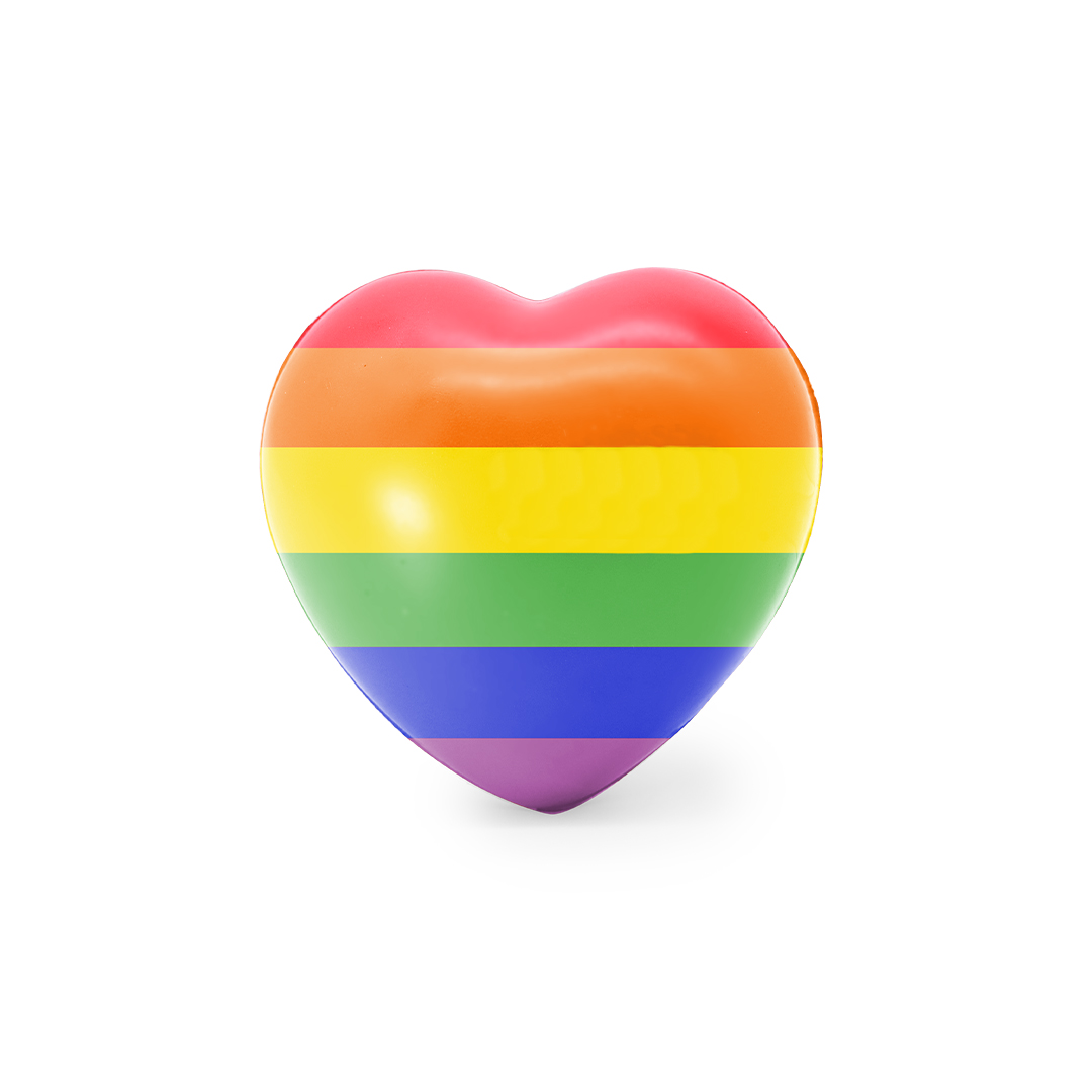 Anti-stress em forma de coração com design Rainbow, fabricado em um suave corpo com acolchoado de PU brilhante.