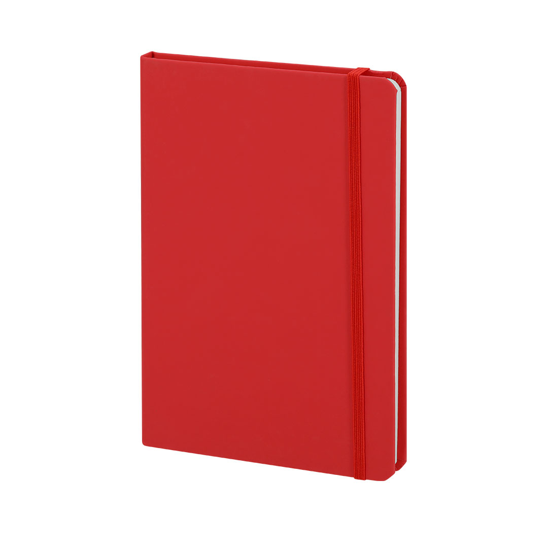 Bloco de notas A5 com capas duras fabricado em macia polipele com 100 folhas de pautadas.