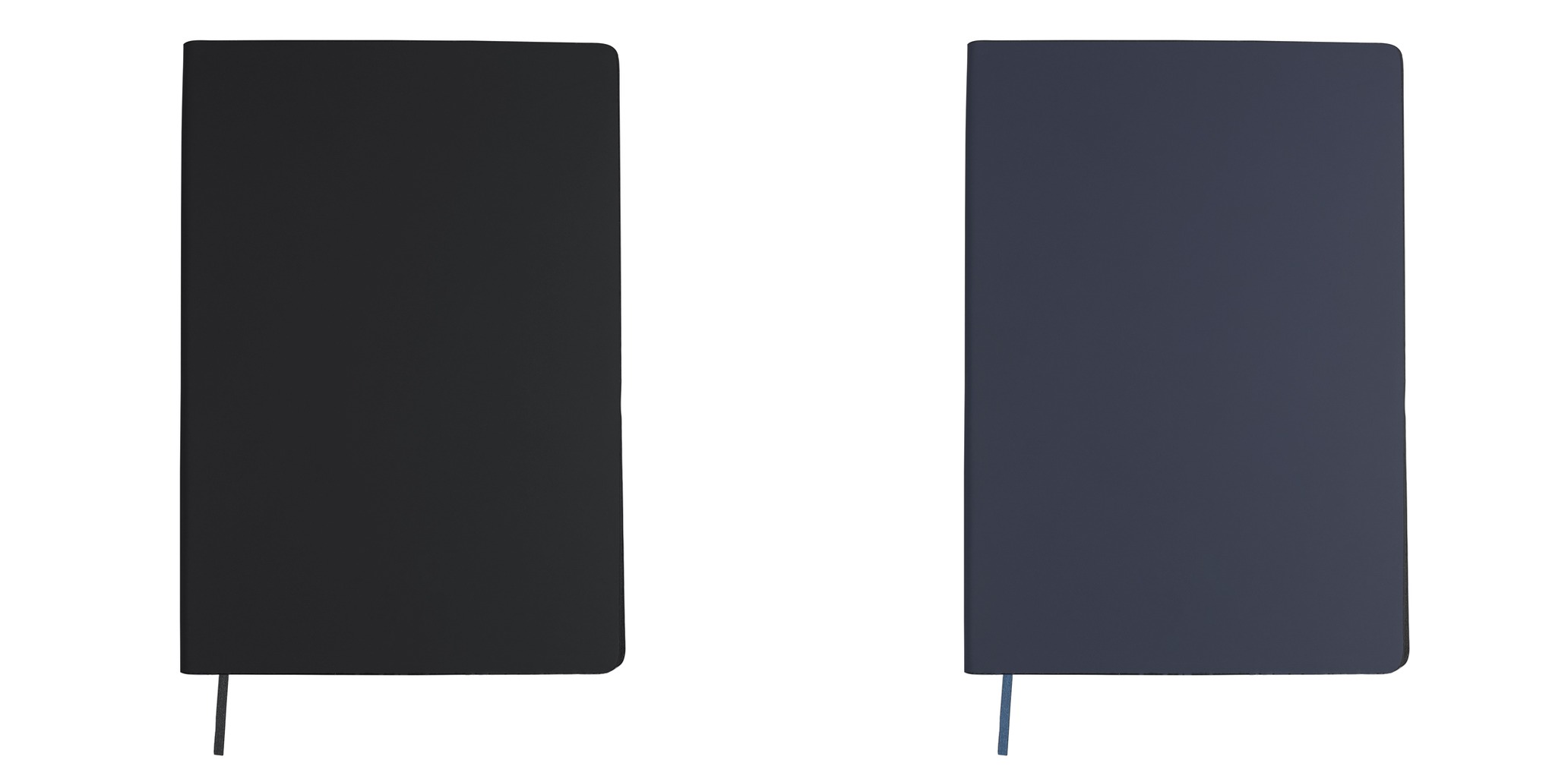 Bloco de notas com capa macia feita de couro PU reciclado.