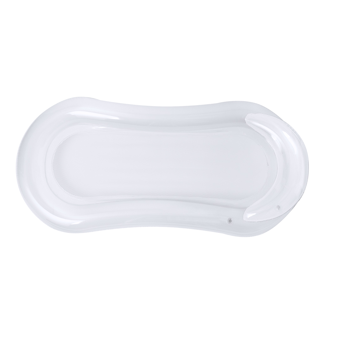 Inclui uma confortável almofada de cabeça com design bicolor, nas cores transparente e branco.