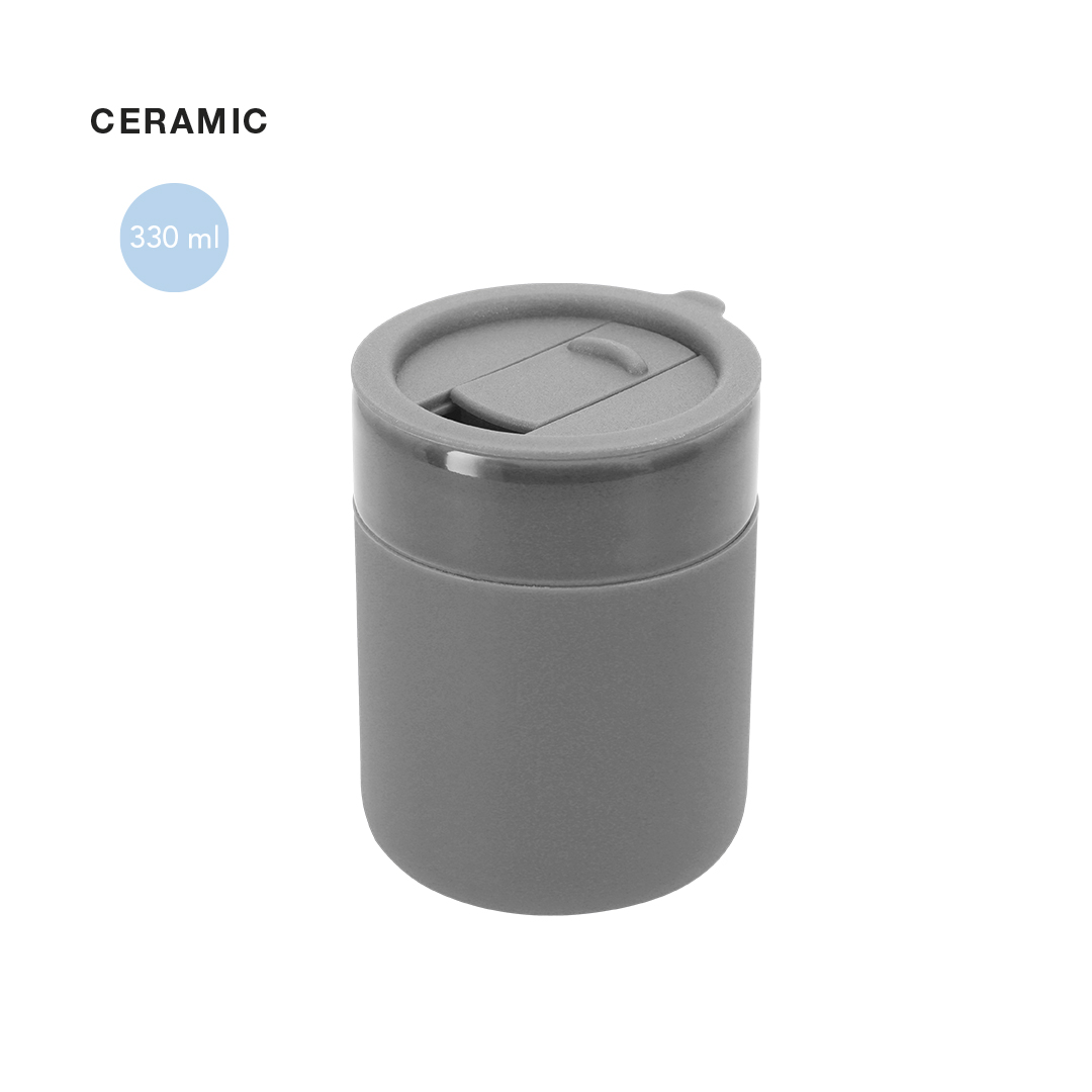 Copo fabricado em cerâmica com capacidade de 330 ml.