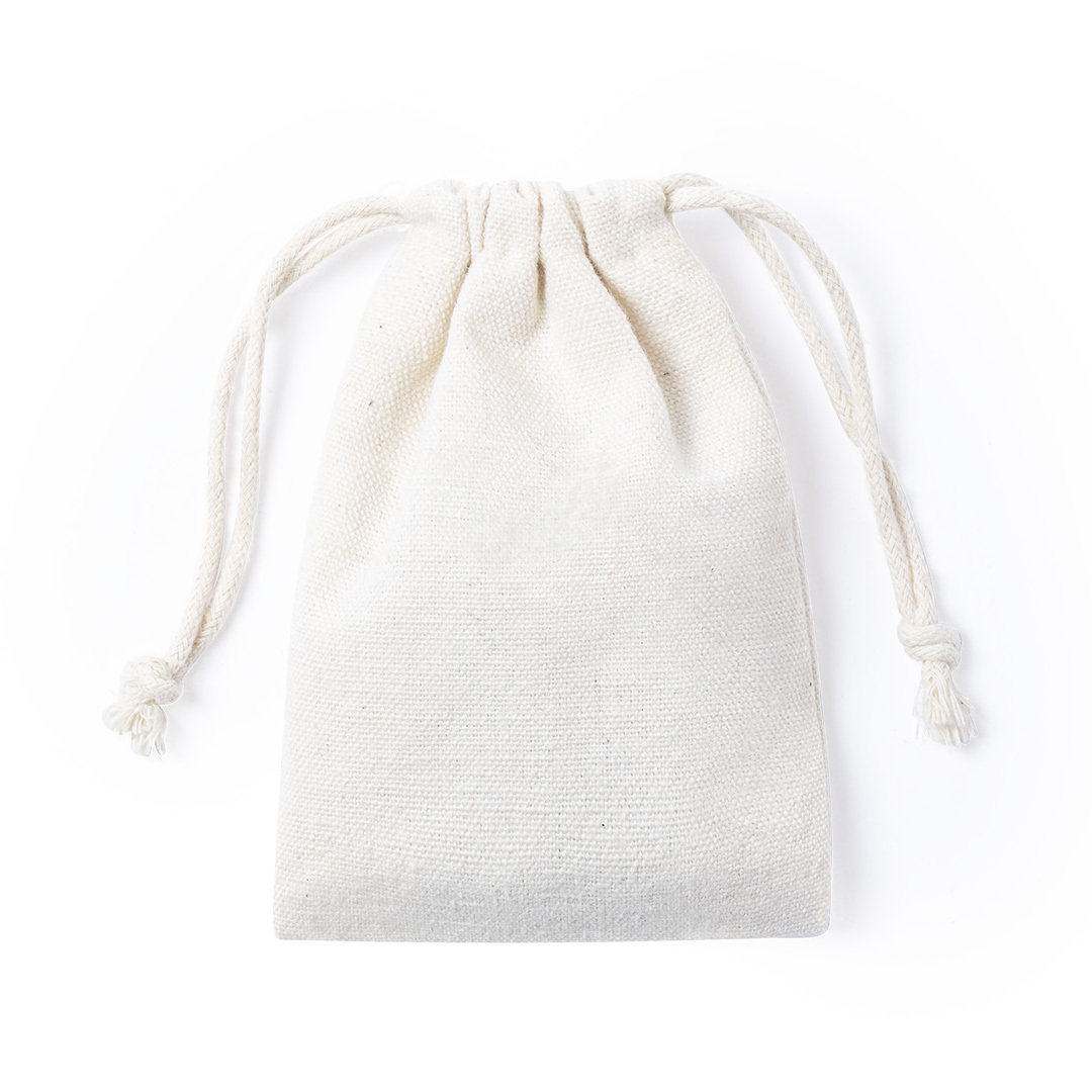 Apresentado numa bolsa de algodão com fecho de cordão.