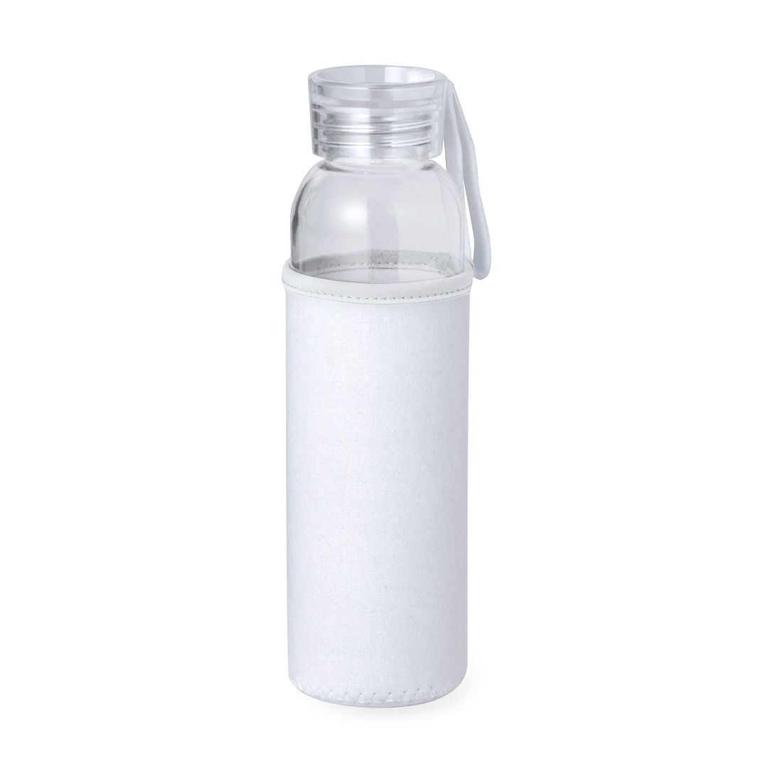 Corpo fabricado em vidro, com tampa de rosca e práctica asa de silicone para um fácil transporte.