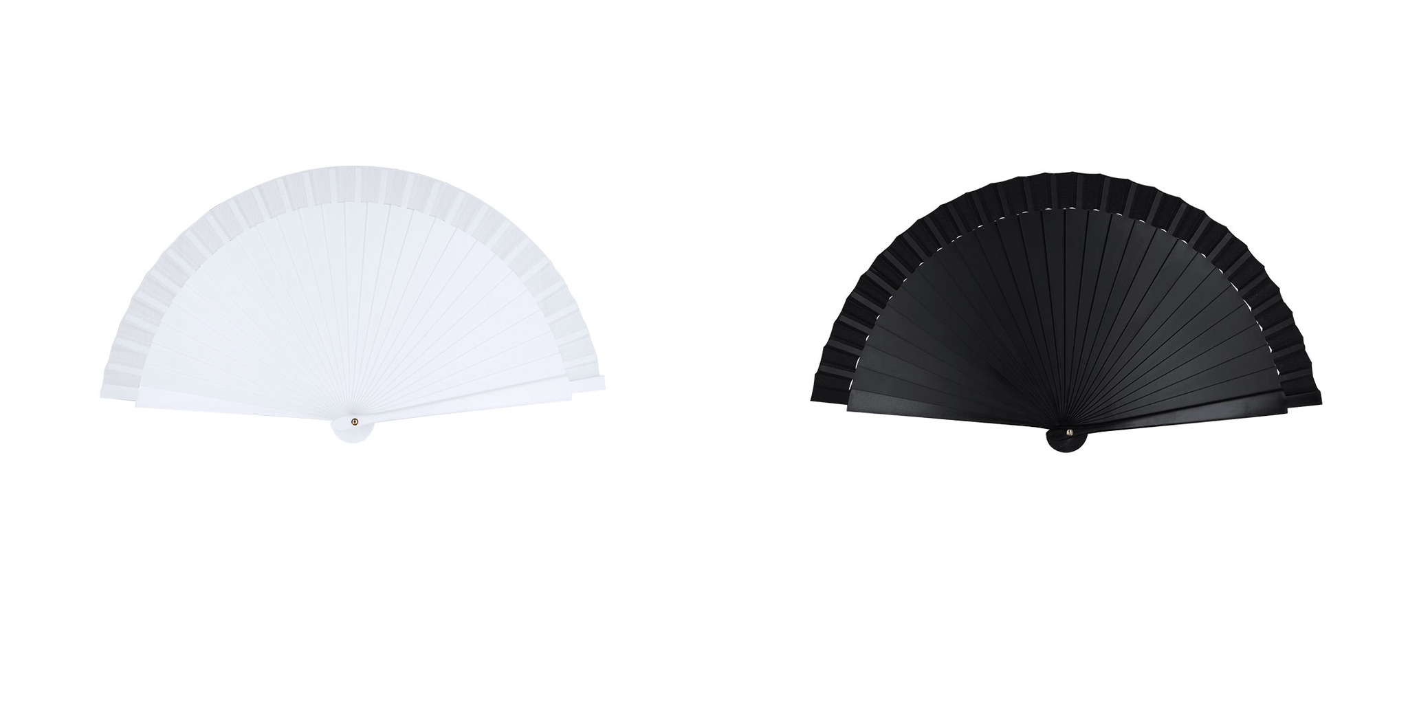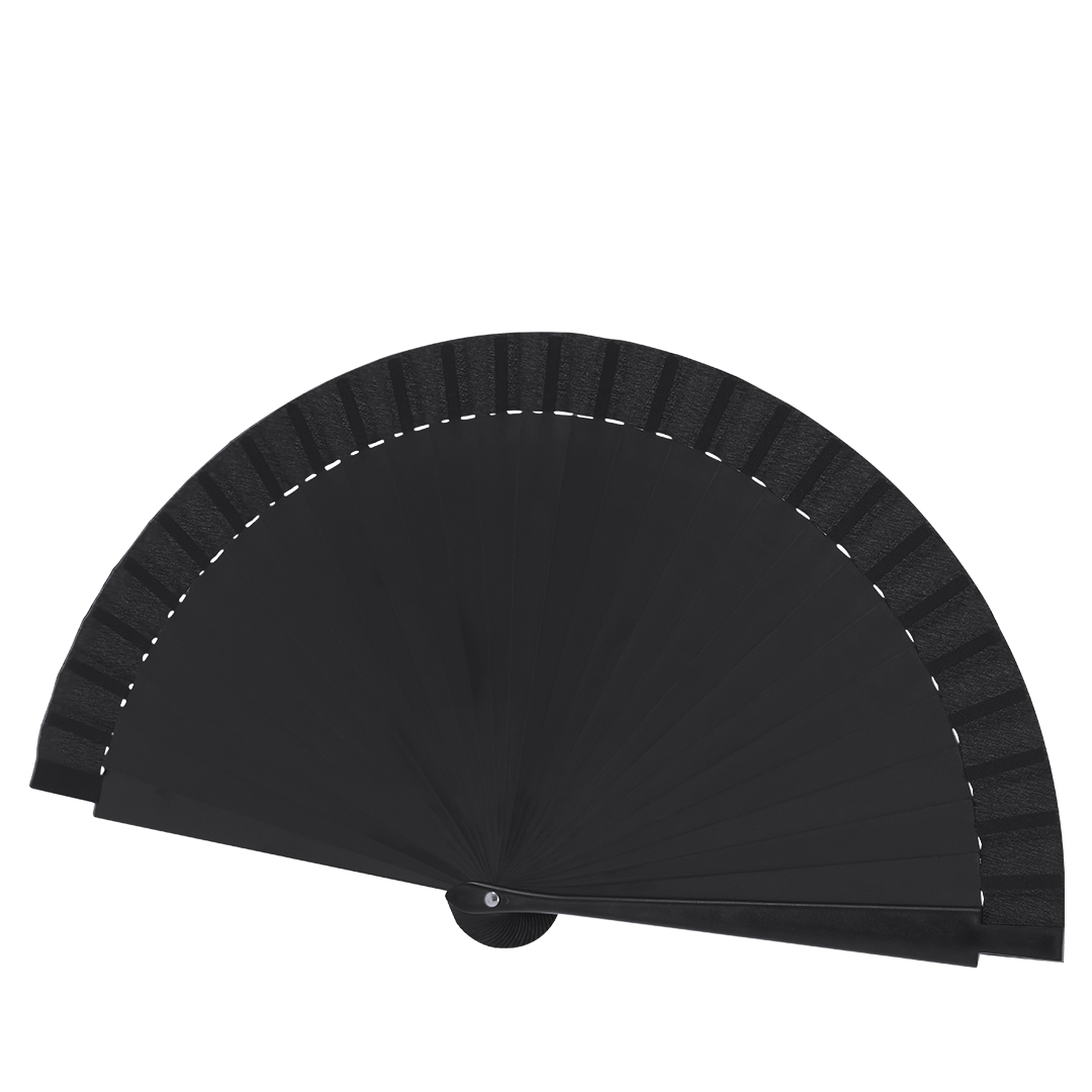 Leque com hastes PP e tecido de poliéster 210D correspondente.