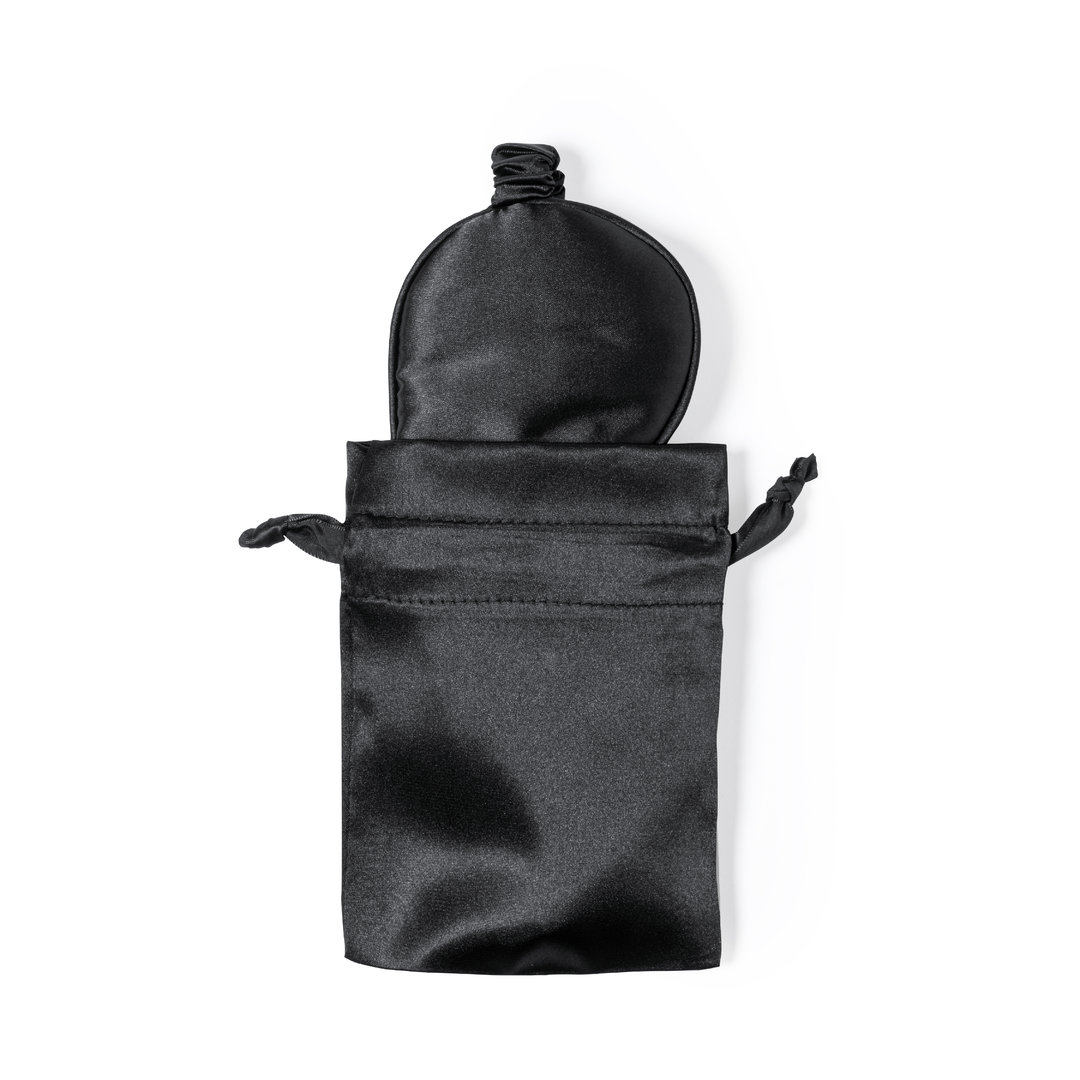 Máscara de descanso em suave cetim, com fita elástica a condizer.