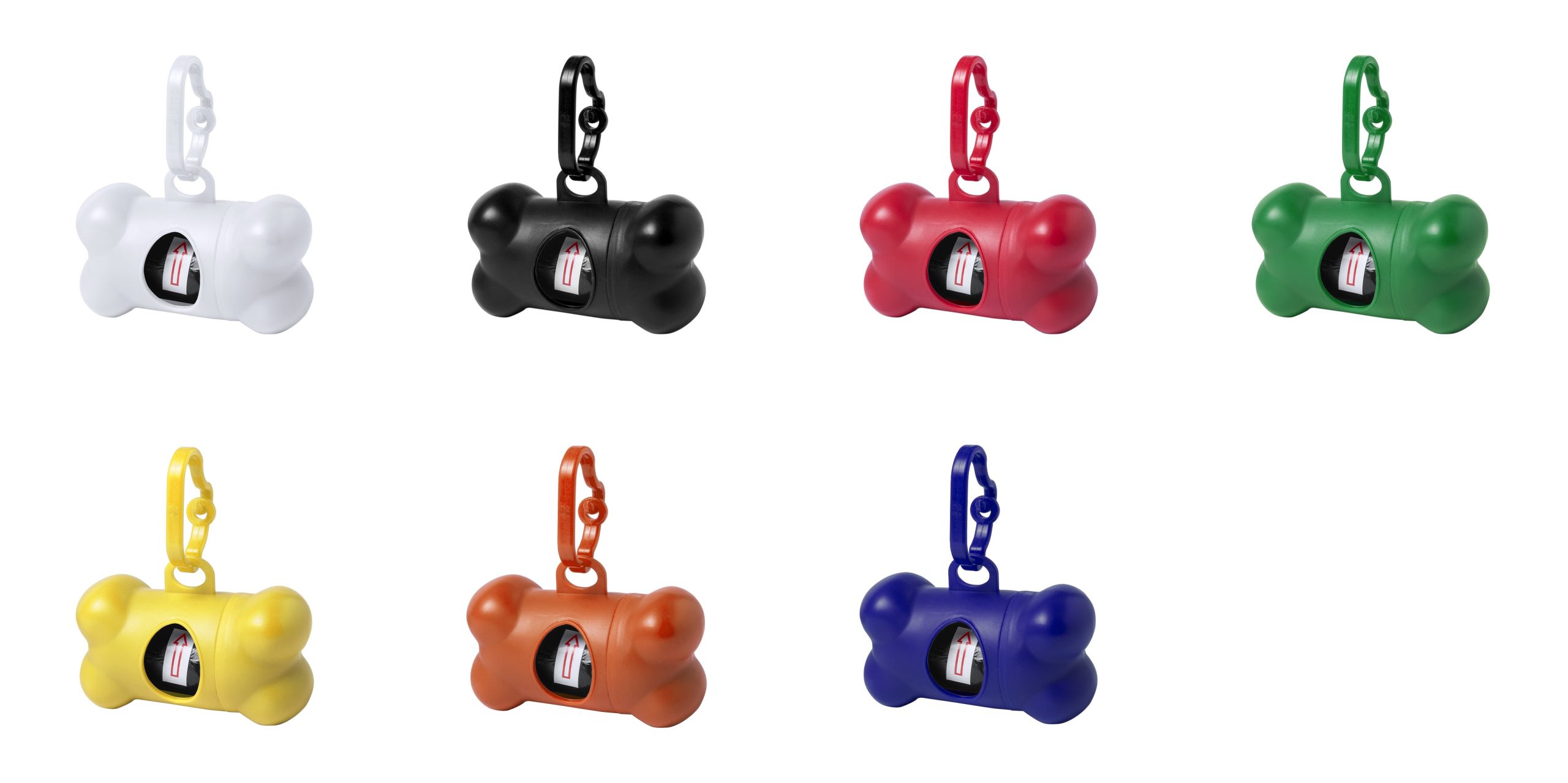 Pet Bag Dispenser com corpo resistente em cores brilhantes e design de osso.