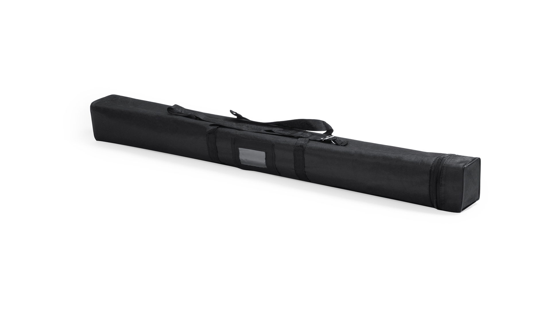 Apresentação em bolsa de poliéster com alças para transporte confortável.